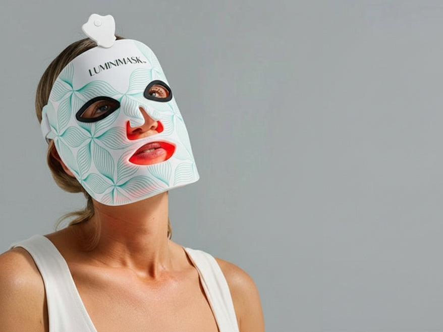 The LumniMask is a flexible, skin-safe LED facial mask that uses red and other color lights to target multiple skin concerns such as wrinkles, acne, and uneven skin tone.